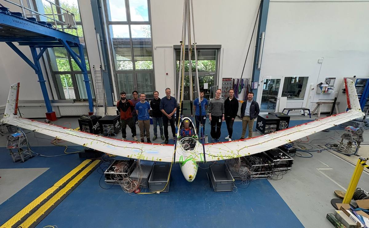 Um eine belastbare Grundlage für die Flatterrechnungen zu schaffen, wurde im Frühjahr 2025 ein umfangreicher Standschwingungsversuch durchgeführt. Vom 28. April bis zum 12. Mai 2025 wurde die AK-X am Institut für Aeroelastik des DLR in Göttingen vermessen. Der mehrtägige Versuchsaufbau wurde von einem fünfköpfigen Team der Akaflieg Karlsruhe begleitet. In dieser Phase wurden rund 80 Beschleunigungssensoren an der Struktur angebracht und der vollständige Messaufbau aus Aufhängung, Anregung und Datenerfassungssystemen eingerichtet.